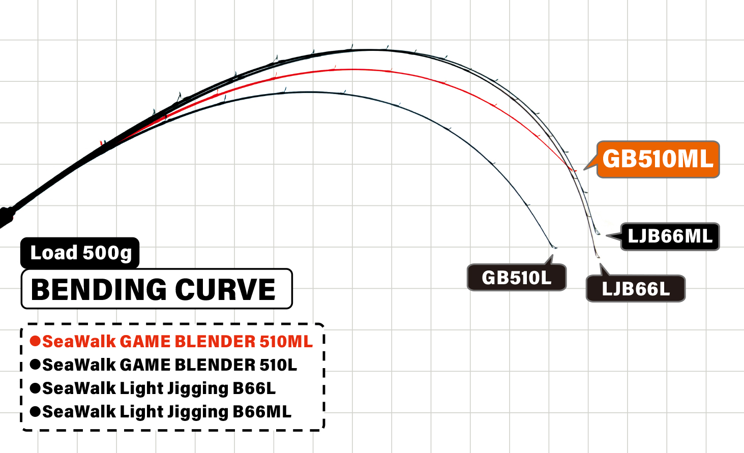 細身で軽量ながらもハイパワーなブランクですが、潮の変化や違和感を読み解くことに優れたモデル。浅場はもちろん、複雑な2枚潮や潮流の速いエリア、さらには深場(~150m)まで幅広く対応できます。チューブラーブランクらしい「感度×復元力」の組み合わせで、フォール中のわずかな違和感を感知し、抜群の操作レスポンスで掛け、高い復元力で臆することなくロッドを曲げてターゲットを楽にリフトできる剛柔一体の一本。