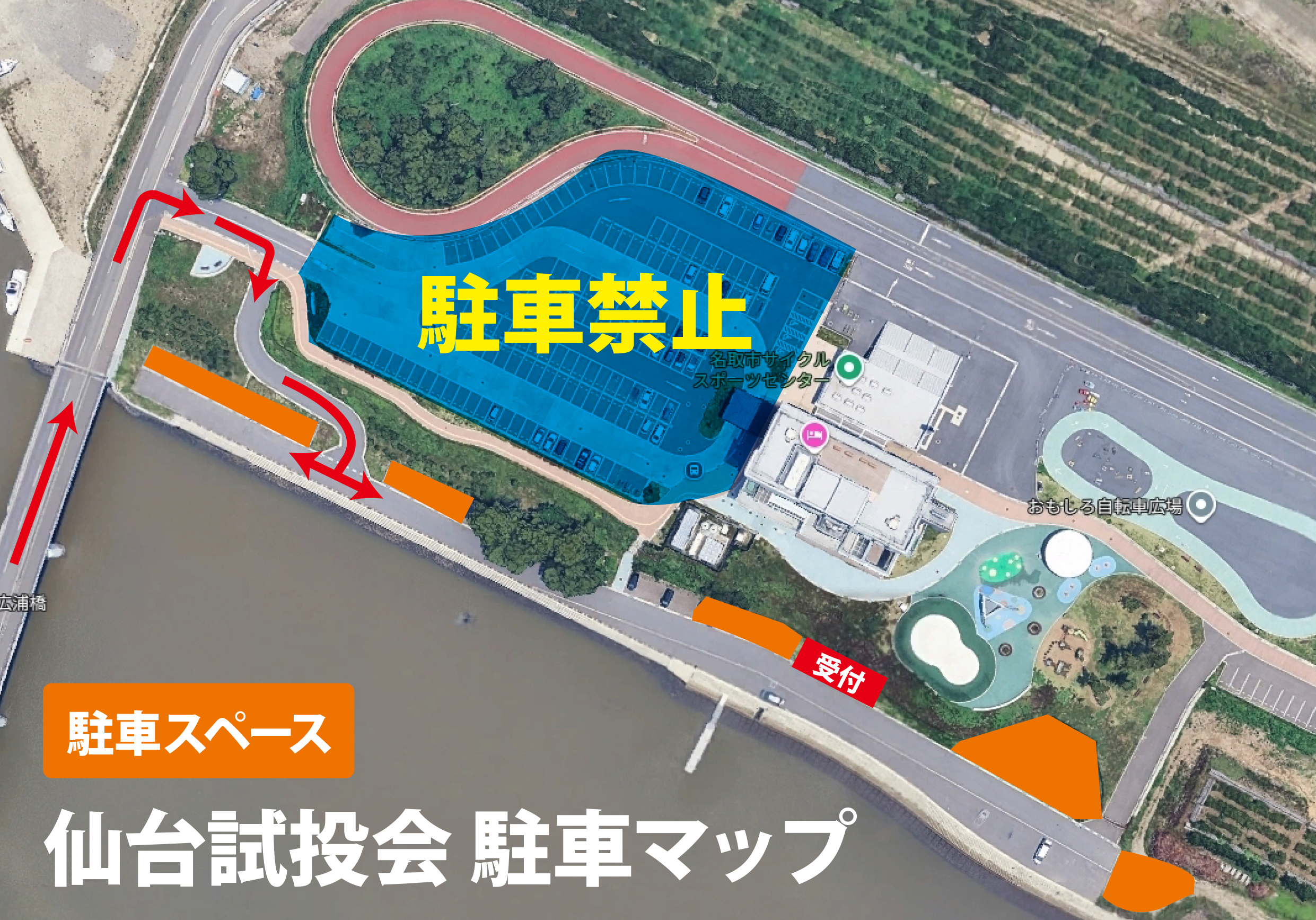 駐車場:名取市サイクルスポーツセンター横 無料駐車場