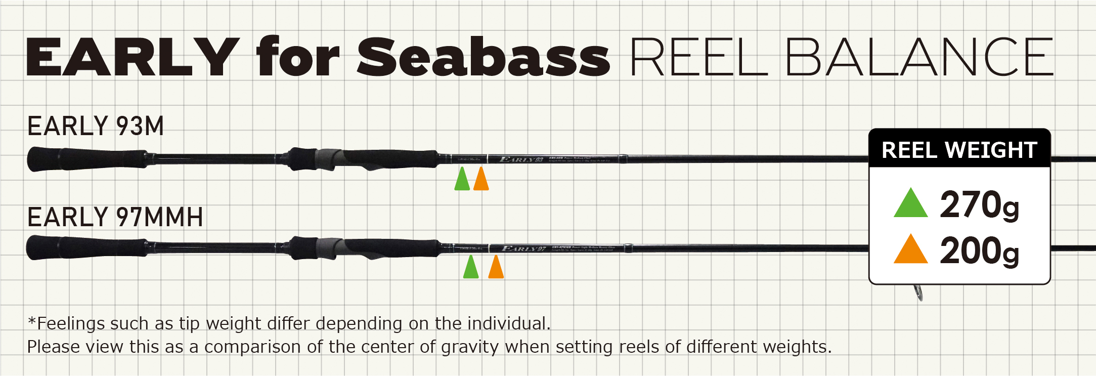 This mark shows the balance point when a reel is equipped. It does not represent a recommended reel weight, so please use it only as a reference for overall tackle balance.