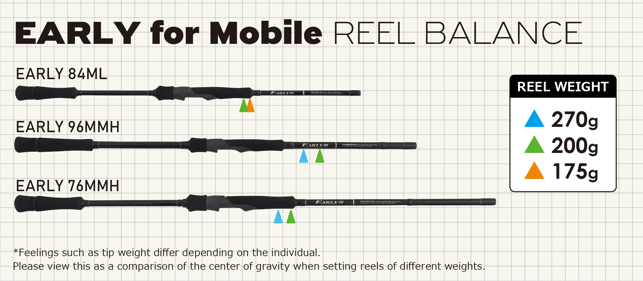 The EARLY for Mobile models are multi piece mobile pack rods which are able to separate into 3~4 pieces. These rods were developed to feel like a 2-piece rod as we refused to sacrifice the rods performance in exchange for mobility.
