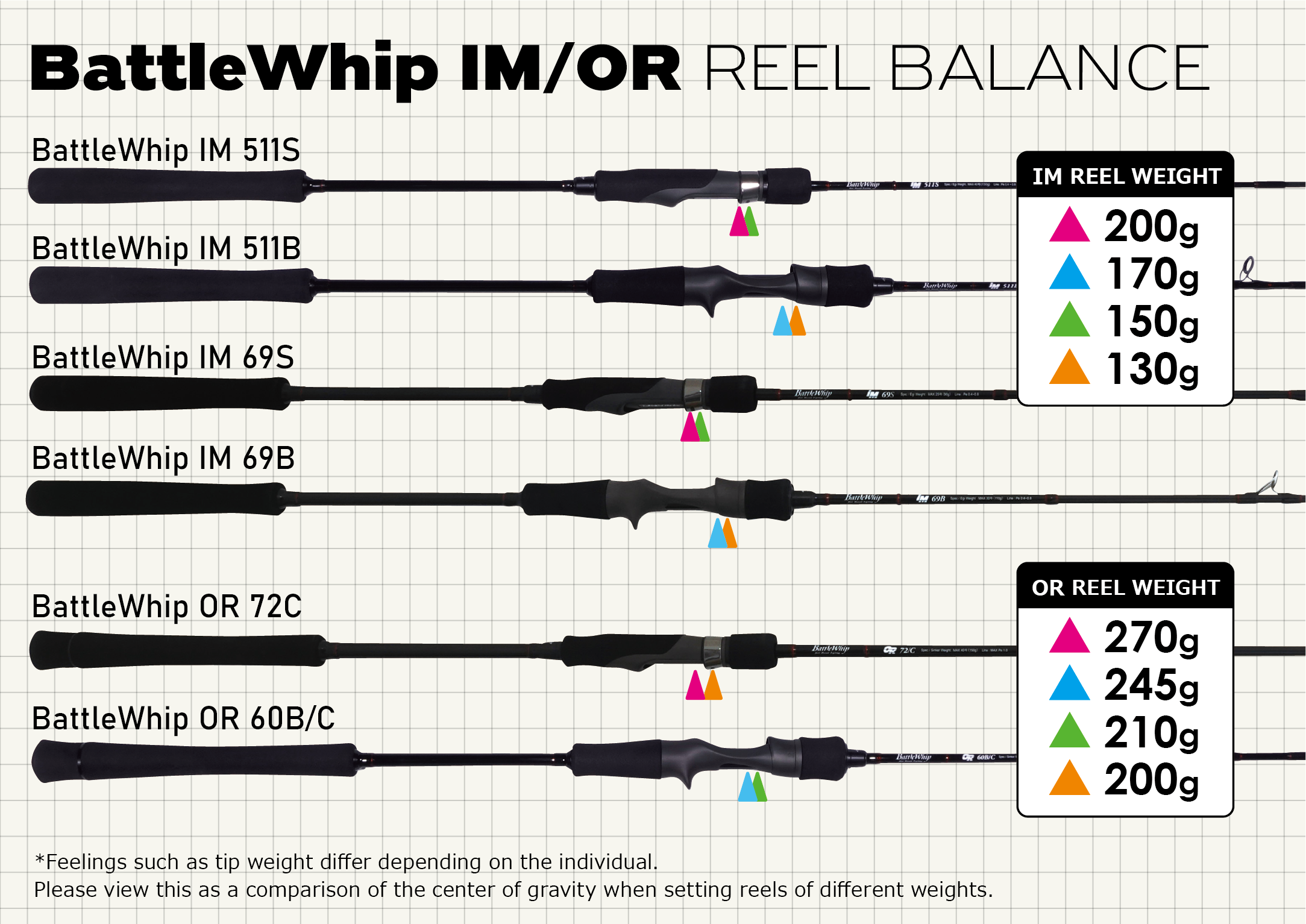 BattleWhip IM & OR Bending Curve Load 150g & REEL BALANCE POSITION