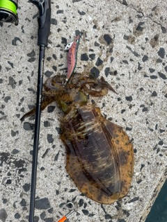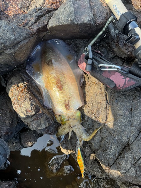 難なくランディングしたのは600gくらいのアオリイカ。
