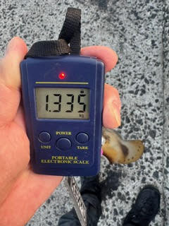 それから30分後くらいにロッドティップを弾くアタリで、今日イチの「1300g」をキャッチ。