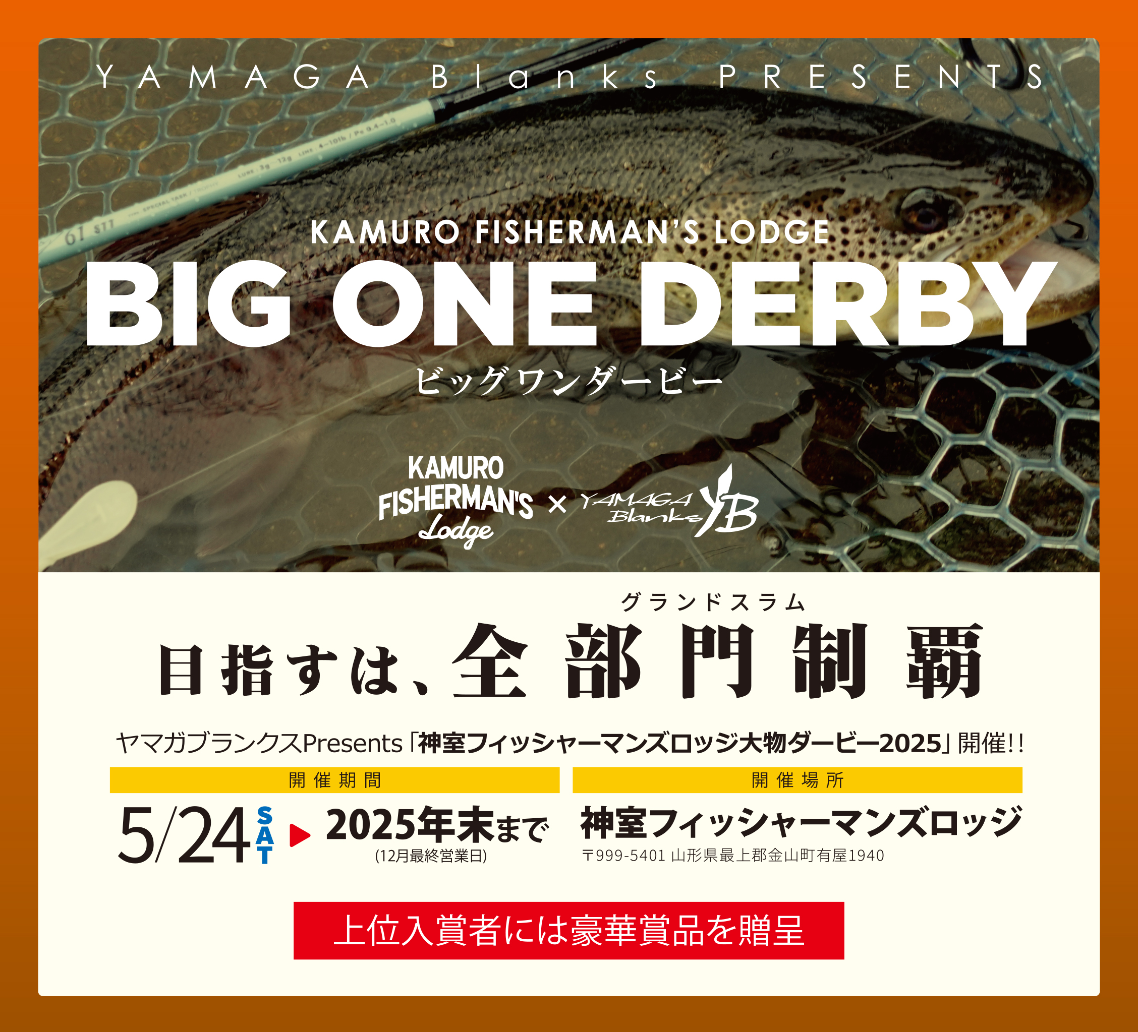 2025年5月24日から12月末にかけて、山形県金山町のエリアポンド「神室フィッシャーマンズロッジ」さまにて開催いたしました『ビッグワンダービー2025』。