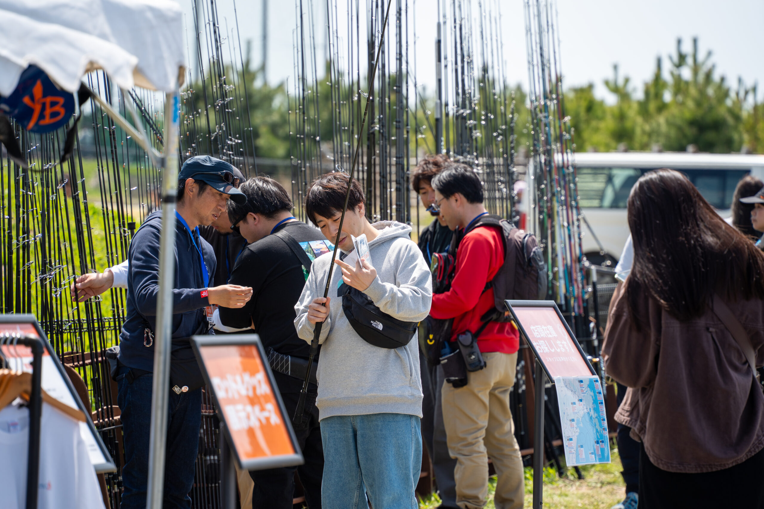 二日間ともに多くのお客様にご来場いただき、絶好の釣り日和と言える快晴の空の下、皆さまと直接お話ししながらロッドを振り抜く爽快な時間を共有することができました。